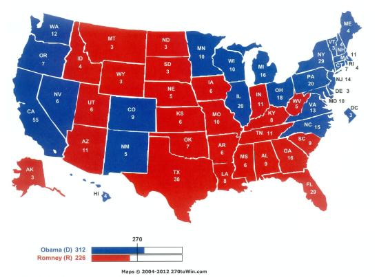 How big would Willard lose? Well, if the General Election were held today, the Electoral College totals based on all available current poll numbers: