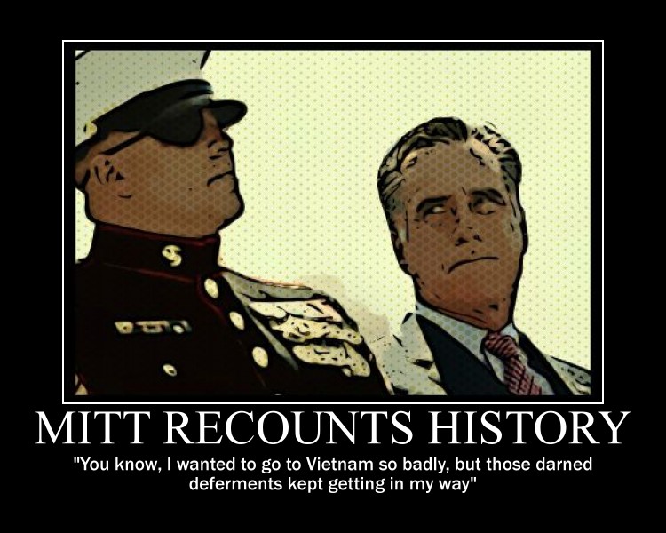 Tags: mitt and vietnam, mitt romney humor, No right turns, romney and deferments, romney draft dodger
