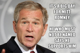 Tags: geroge bush humor, geroge w bush endorses mitt romney, geroge w bush says he supports mitt romney, mitt romney humor, No right turns