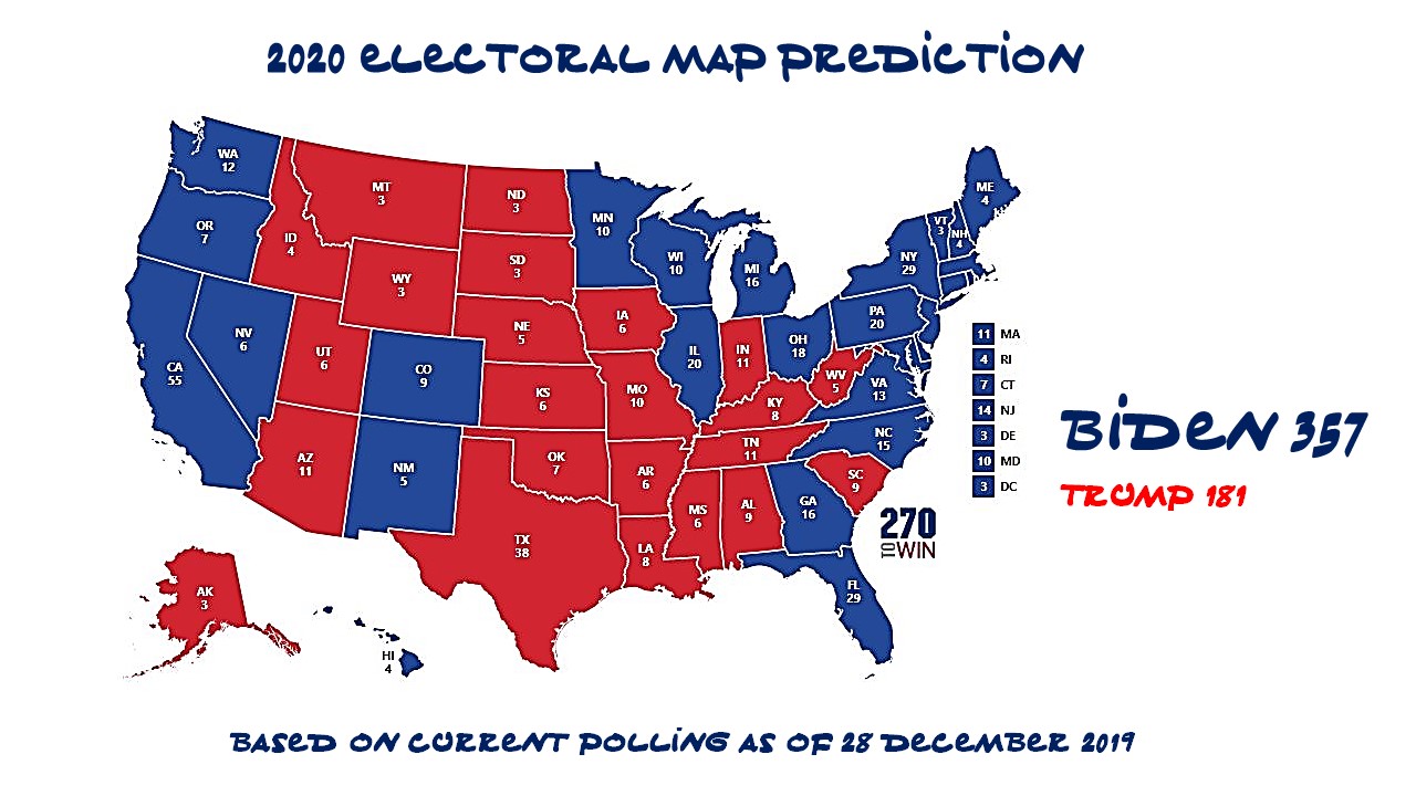 Electoral Map Prediciton Biden v Trump 28 Dec 2019