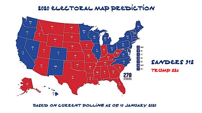 Electoral Map Prediciton Sanders v Trump 10 Jan 2020