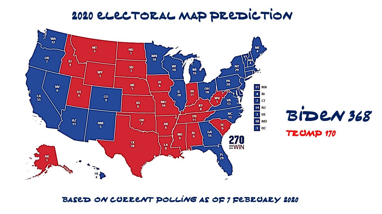 Electoral Map Prediciton Biden v Trump – 7 Feb 2020