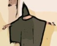 This prisoner had electric wires attached to his genitals, and was forced to stand like this for hours. If he dropped his arms or moved from the box, he was shocked.