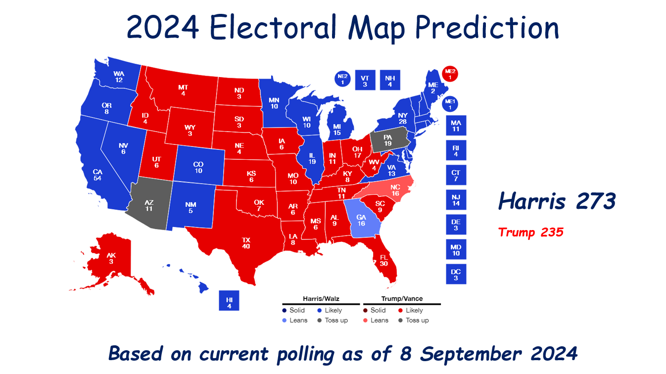 As far as the national race for the White House is concerned, according to recent state polling data available, if the election was today, odds are that Vice President Harris would be the 47th President of the United States, while Trump, who forever remains the only twice-impeached convicted felon, adjudicated rapist and fascist former president in U.S. history, will go down as having lost two elections in a row.
