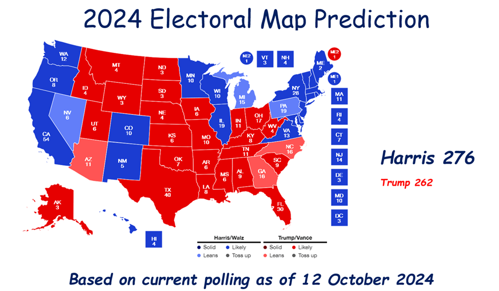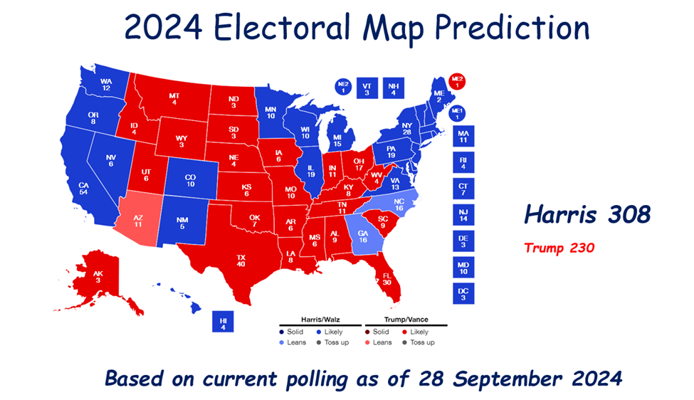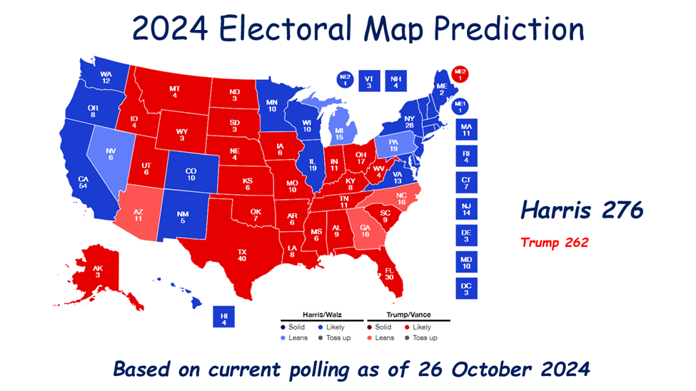 In national polling, the latest ABC News/Ipsos Poll, conducted between 30 October to 01 November 2024 of 2267 “likely voters,” has the election lining up like this: