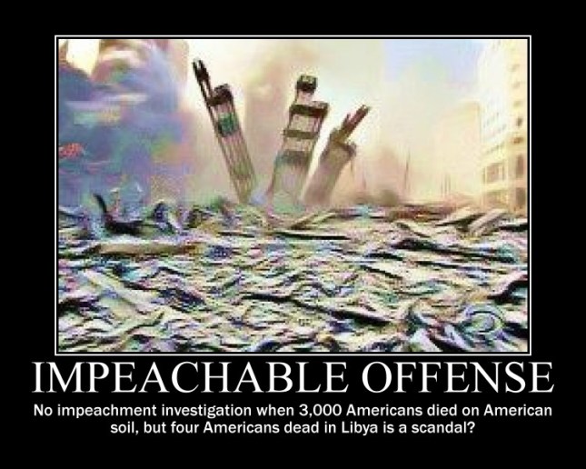The Republican Tea Party (GOTP) has determined since it can’t beat the President in an election it’ll impeach him and drive him out of office. Presumably the new impeachable offense is the terrorist attack against our Consulate in Benghazi, Libya. Of course the biggest problem with this latest nefarious plan in a long list of nefarious plans by the uber-right is first, the President would have to commit a crime, and second while the House may impeach a President, it’s the United States Senate which would actually try him and which has the power to thus remove him from office. Good luck with that plan.