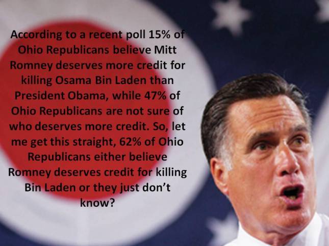 Furthermore Senator since you have made it your stated mission to defeat President Obama, basically everything you say has to be questioned not only for its validity and relevance but also for its accuracy. You’ve attempted – once again – to portray this President as being soft on terror; I’m sorry but which President actually ordered a Navy Seal team to get Bin Laden? Oh yeah, this one!
