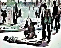 The students at the University of New Mexico were told to disperse and refused, so the National Guard fixed bayonets and began stabbing people to control the crowd…