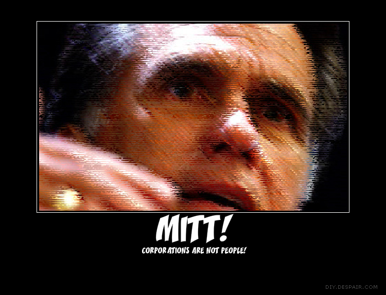 Corporations are people? Well of course they are to those who prostitute themselves to them Mittens. People like yourself and the five conservative justices on the Supreme Court who said so in the infamous “Citizens United” ruling.