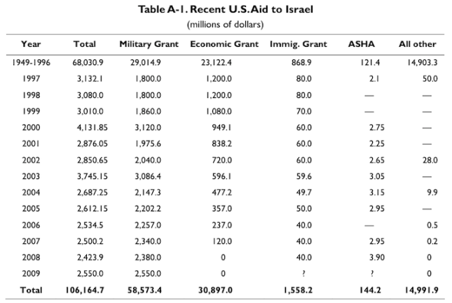 Under President Clinton aid to Israel was $4,132,000,000 but under the Bush administration aid to Israel steadily declined to $2,424,000,000; under President Obama aid to Israel is on the rise once again $2,550,000,000 in 2009 and $2,770,000,000 in 2010 with continued increase expected through FY 12.