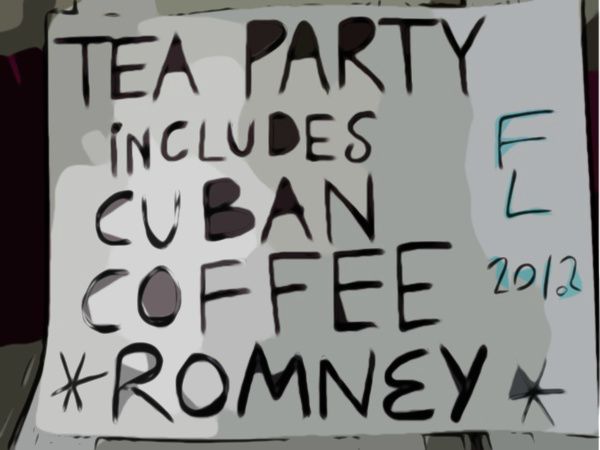 Alan Reynolds, a Romney supporter showed up to the Hialeah rally holding up a sign which read, “Tea Party includes Cuban Coffee Romney”. Once Romney’s staffers spotted the sign Reynolds was escorted away from the scene.