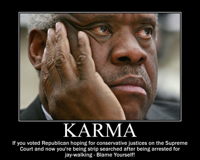 Mr. Associate Justice, step down before you humiliate yourself any further. You are clearly unqualified as your recent stands on any number of cases prove. You have been shown to be unethical by refusing to recluse yourself from cases where there is clear conflict of interest. You sir, are an embarrassment.