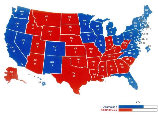 As a comparison, President Obama defeated John McCain 365/173 in 2008