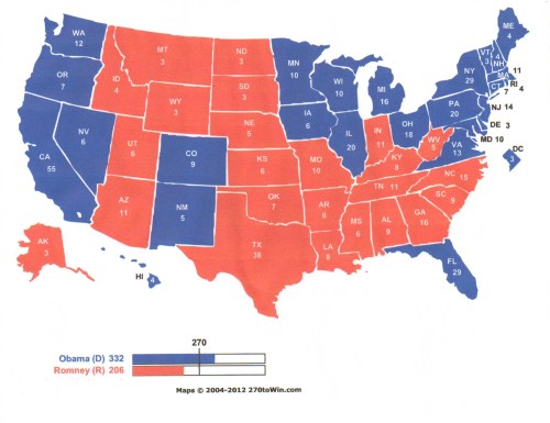 As a comparison, President Obama defeated John McCain 365/173 in 2008